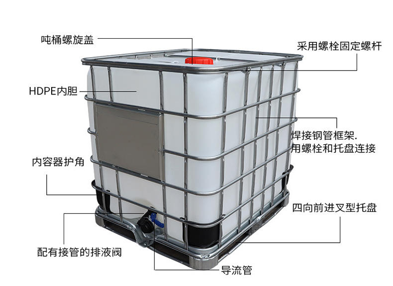 與圓桶相比,IBC集裝桶可以節(jié)約35%的儲存空間。它的尺寸依照ISO標(biāo)準(zhǔn),以易于操作為原則,靜態(tài)空桶可以堆高四層,并以任何常規(guī)方式運(yùn)輸。IBC集裝桶可以多次重復(fù)使用,在灌裝、儲運(yùn)和運(yùn)輸時體現(xiàn)出來的優(yōu)勢能明顯地降低成本。本公司供應(yīng)的IBC集裝桶的內(nèi)容器采用全新的高密度聚乙烯材料,外護(hù)套為鍍鋅鋼管焊接的網(wǎng)格,底盤采用四向進(jìn)叉型全鋼型托盤,放置穩(wěn)固。