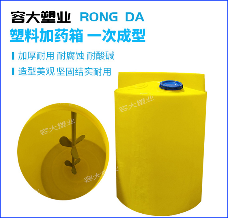 加藥箱它以?xún)?yōu)良的衛(wèi)生綜合機(jī)械物理性,豐富的內(nèi)涵力學(xué)原理、無(wú)焊縫、一次成型、耐酸堿、耐碰撞、耐高溫80℃、耐冷凍-30℃、內(nèi)外光滑、抗強(qiáng)震、防紫外線(xiàn)照射使用壽命長(zhǎng)、不長(zhǎng)青苔易清洗、安裝移動(dòng)方便,具有安全便捷、無(wú)需維修等優(yōu)點(diǎn)。同時(shí)頂部加裝攪拌和計(jì)量泵加強(qiáng)筋設(shè)計(jì)。實(shí)用于水處理凈化設(shè)備配套、環(huán)保、水軟化系統(tǒng)、加藥系統(tǒng)等行業(yè)的加藥和軟化。藥箱可選配件有攪拌機(jī)和計(jì)量泵,特殊設(shè)計(jì)請(qǐng)?zhí)崆案嬷?/span>。
