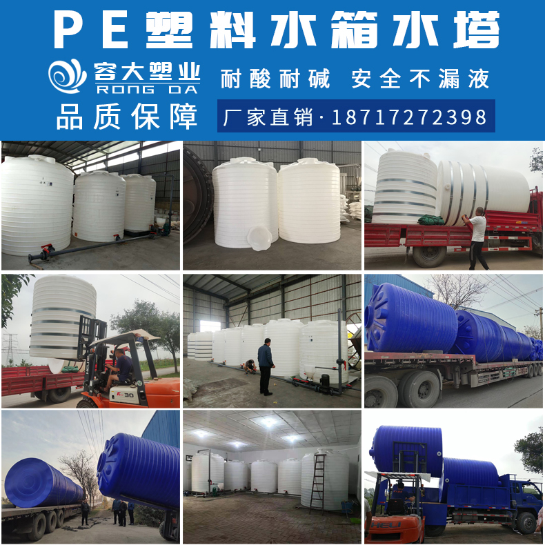 中衛(wèi)10噸橡膠塑料水塔 大白桶牛筋料水塔 10噸外加劑儲(chǔ)罐廠家批發(fā) 混凝土外加減水劑母液儲(chǔ)存罐:外加劑水劑的儲(chǔ)存,通常采用桶裝(儲(chǔ)罐)。 容大塑業(yè)PE塑料儲(chǔ)罐產(chǎn)品特點(diǎn): 以進(jìn)口LLDPE為原料,采用滾塑一次成型; 結(jié)構(gòu)合理,無(wú)焊縫、整體強(qiáng)度高; 可儲(chǔ)存介質(zhì):聚羧酸 減水劑 外加劑 混凝土外加劑 保塌劑 助磨劑等工業(yè)制品、原料、母液 應(yīng)用場(chǎng)景:攪拌站 商砼站 拌合站 復(fù)配站 減水劑儲(chǔ)存 外加劑聚羧酸復(fù)配 保塌劑合成等